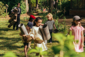 De natuur levert een belangrijke bijdrage aan de ontwikkeling van het jonge kind. Vele leerkansen in de natuur liggen in onze directe schoolomgeving gewoon voor het grijpen! Onze speelplaats en speelbos stimuleren creativiteit en beweging.