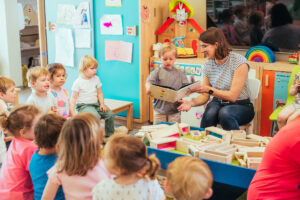 In de klas wordt uw kleuter voornamelijk begeleid door de klasjuf. Zij stimuleert de ontwikkeling van de kinderen via spel en aangepast materiaal. Wanneer een kleuter extra ondersteuning nodig heeft, bijvoorbeeld bij een vertraagde of versnelde ontwikkeling, springt de zorgjuf bij. Bij de jongste kleuters biedt ook de kinderverzorgster extra hulp in de dagelijkse klaswerking