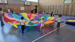Onder het motto ‘een gezonde geest in een gezond lichaam’ bieden we onze kinderen doorheen het schooljaar heel wat bewegingskansen aan. Dit bij uitstek binnen de lessen lichamelijke opvoeding (2x/week). We vinden het belangrijk dat ook een aanbod van zwemmen behouden blijft. Leerlingen van het 1ste, 2de, 4de en 6de lj zullen in blokken van ongeveer een 6-tal weken gaan zwemmen in het zwembad van ‘Het Beerke ‘ te Beerse. Door enkele weken aaneensluitend te zwemmen ligt het leerrendement hoger. Hierbij doorlopen de leerlingen een opbouw van watergewenning tot overlevingszwemmen tot het afleggen van de ‘Water safety test’.