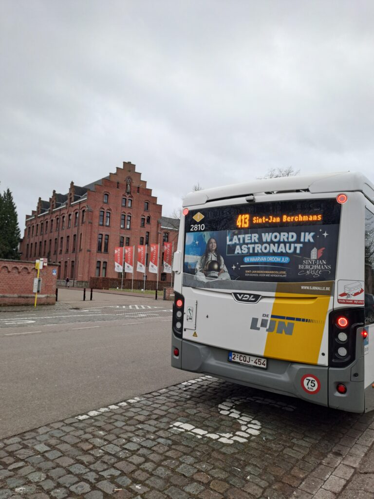 In onze regio bestaat er een uitgebreid netwerk van busverbindingen dat tot stand gekomen is door nauwe samenwerking met De Lijn. Deze schoolbussen brengen de leerlingen tot bij de ingang van de school en ’s avonds (en op woensdagmiddag) staan ze daar ook klaar na de lessen.